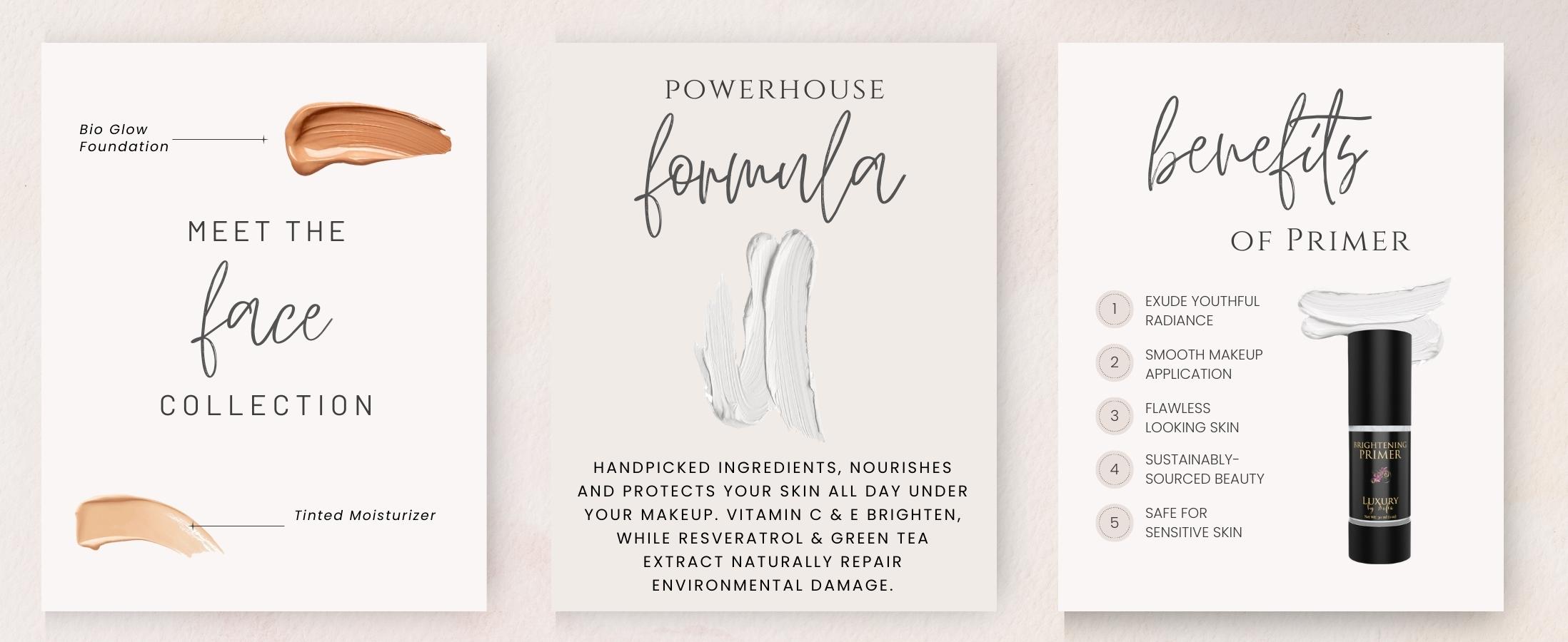 Erase imperfections and uneven skin tone with our organic face primer to create a luminous smooth canvas for long-lasting makeup application.